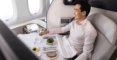 Enjoy a delicious selection of contemporary small and main dishes alongside a full standard formal dining offering, you can even choose what and when you would like to eat before take-off with the help of Menu Select on Manage Booking. Consult one of our Sommeliers in the Sky about which of our award-winning Australian wines you’d like to match with your meal.
