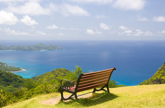 We couldn’t list the best benches in the world without mentioning the Seychelles. Sitting on top of a hill on the Mahe Island, you’ll be able to see the clear blue waters for miles.