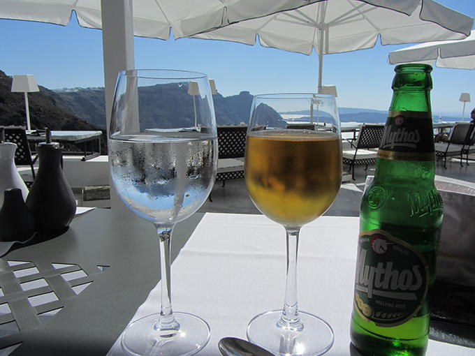 Although I never drink beer when I’m at home in the UK, when on holiday somewhere warm and sunny, I love nothing better than relaxing with a cold lager. In Greece, there are a number to choose from, including Alfa, Pils Hellas and FIX, but it was a nice chilled glass of Mythos that arrived on this particular day when I simply requested ‘a beer’. A blonde lager with a biscuity taste, Mythos is cheap, refreshing, and found absolutely everywhere. Cheers!