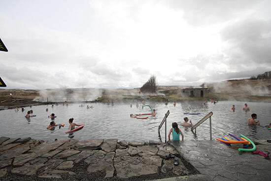 Unlike the silica-impregnated, pungent waters of the Blue Lagoon (an undeniable sulphurous whiff lingers in the air), the hot springs that feed the Secret Lagoon produce dazzlingly clear freshwater. Sure, it can be a bit of a shock when you look down and can see your bikini-body in all it’s wrinkly ‘I’ve been in the bath too long’ glory, but you can also see the natural black pebbles beneath your feet. The whole experience feels more natural than the slightly gimmicky Blue Lagoon. There’s no ‘swim-up’ bar, no attendants handing you mud to smear on your face, and certainly less selfie sticks to dodge. Though the Blue Lagoon offers remedial mineral-rich waters, the serene Secret Lagoon is the place to get your mindfulness fix.