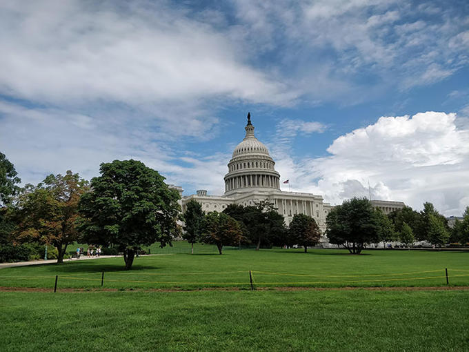 I walked around the front of the building where the peaceful Capitol Reflecting Pool was surrounded by flowers (and tourists). Here I was rather amused to see the controversial duck ramps – criticised by a local congressman as "government waste" – which allow the adorable ducklings to get in and out of the water with ease. This also made a lovely photo stop, as the Capitol reflected nicely in the water, although the ramps were, sadly, duck-free on this occasion.