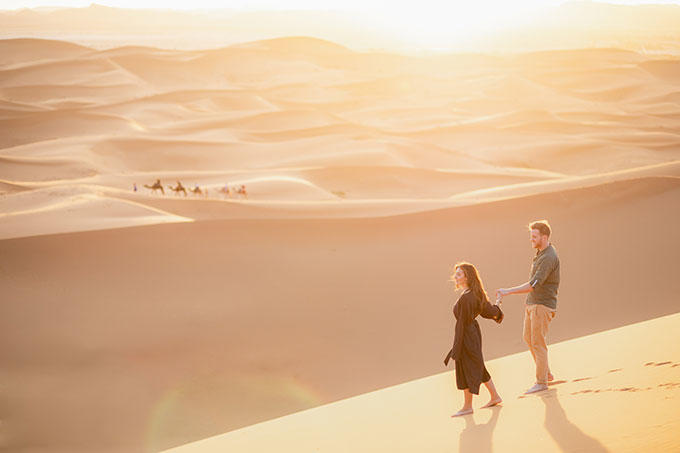 A desert safari is the perfect opportunity to tick off some thrilling bucket list experiences. Choose from an extensive list of activities that are sure to get your pulse racing. From quad biking and sand boarding to camel riding and dune buggies, there is something for everyone. The beauty of a desert safari is that you can take the experience at your own pace. If the adrenaline inducing sports are a little too adventurous, you can choose a tour operator that offers serene evenings with Arabian dining experiences and shisha under the stars. Most safari tours include traditional cuisine (expect delicious Arabic dishes such as Falafel, chicken and vegetable wraps) and entertainment such as a beautiful belly dancing performances, a falcon show and henna painting.