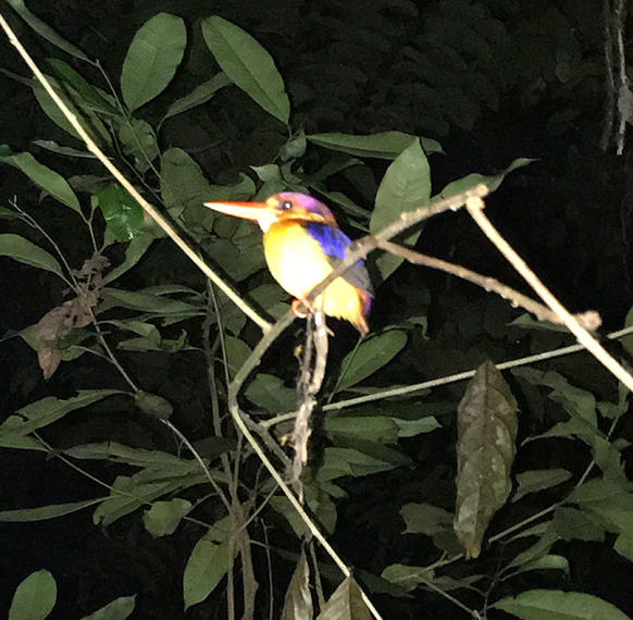 Later that evening, after another generous meal, we got ourselves prepared for the night safari into the surrounding jungle behind our lodges. To avoid being eaten alive by bugs and mosquitos we covered up from head to toe: I’m talking full-length wellies, a shirt and leggings – not a comfortable experience in the humidity that’s for sure. Armed with nothing but a torch, we set off into the darkness to see what we could find. The result? My worst nightmare: spiders, spiders, and more spiders. Cue several stifled screams from me – much to the amusement of my group. Despite this, I continued on and was relieved to see something that wasn’t a spider: a clutch of vibrantly-coloured birds, sleeping peacefully in the trees. Despite being a fairly terrifying experience (especially if, like me, you have a strong fear of insects) it did make us feel like true intrepid explorers, wandering into the darkest of jungles, putting all our faith in one guide.