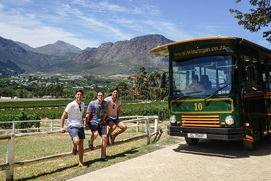 Franschhoek has vineyards galore, so much so that it soon becomes a test of willpower when it comes to stopping yourself and deciding whose turn it is to drive. That is, unless you take the Franschhoek Wine Tram of course. It sounds too good to be true, and it is. Almost. On a recent trip to the Western Cape, I travelled with two friends (John and Travis) and we decided that, rather than arguing over who was driving, we’d test out this revamped Franschhoek fad.