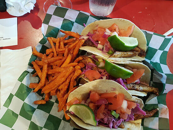 Perhaps a bold statement, but fish tacos don’t get much tastier than this. While Wintzell’s may be known for its oysters (and even I admit the baked varieties we tried here were extraordinarily tasty), it’s the blackened fish in tortillas that really stood out for me. Cooked with just the right level of spice, the fish is topped with Pico de Gallo (fresh, Mexican salsa), purple cabbage and a squirt of lime. It needs nothing more; the flavours are balanced faultlessly. And you get three of the floury tacos, not to mention a side of fries (or sweet potato fries), so there’s plenty to keep you going for lunch or dinner. That said, if you’re still hungry, be sure to order a side of the fried crab claws too.