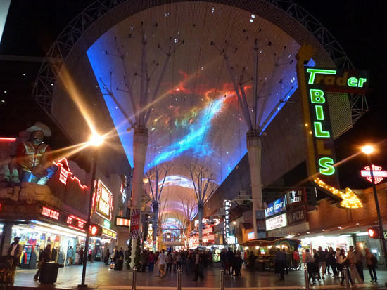 Fremont Street is famed, however, for the nightly light shows it holds on the ceiling of the pedestrian mall. Fremont Street’s covered walkway boasts 12.5 million lights and, together with 550,000 watts of sound, comes alive in a spectacular free show.