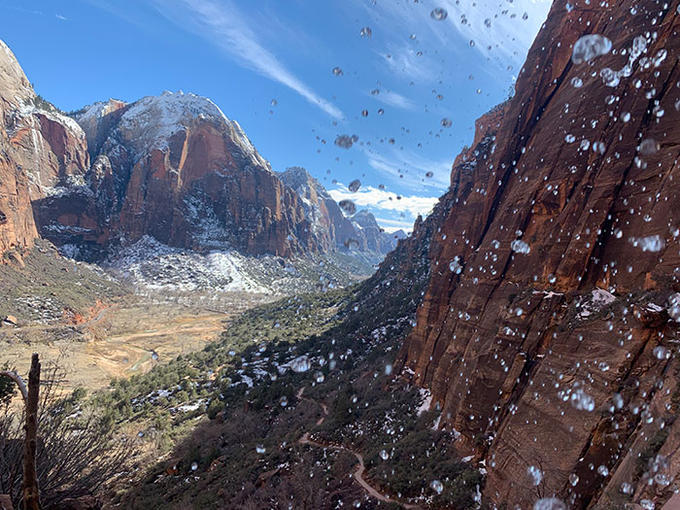 It was slow going and the constant slipping caused much laughter, but we eventually made it to Scout’s Lookout. The tricky switch backs made our next decision easy. After taking a moment to enjoy the new vistas of the valley, it’s our turn to slide back down the mountain, which caused even more hilarity. Angel’s Landing, and the magnificent views it affords in every direction, will have to wait until we return.