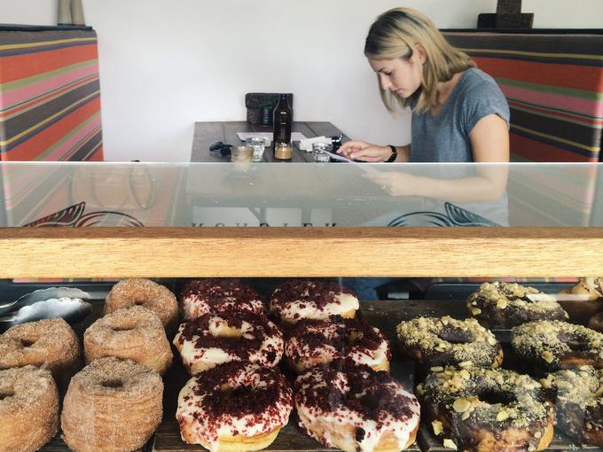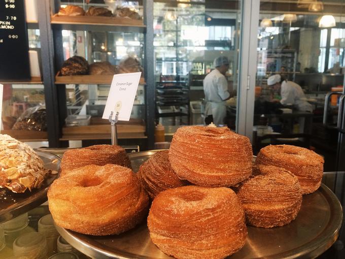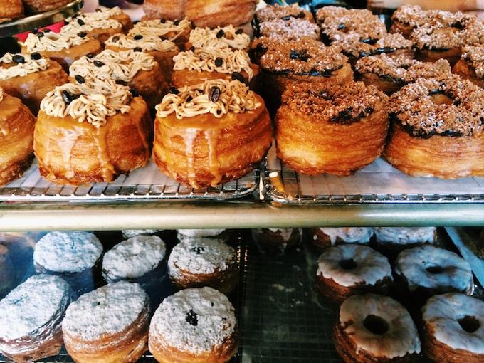 Injecting an element of surprise into their cronuts are the Rosetta Stone Bakery, whose bakers you can see hard at work at their glass fronted bakery in Alexandria. Their weekday staple is a cinnamon sugar cronut, which they also provide for Campos Coffee in Alexandria and Newtown. When the weekend comes however, they surprise customers with fun flavours including Nutella topped with caramel popcorn or varieties themed around a certain event, like rainbow coloured for Mardi Gras or lamington flavoured for Australia Day.