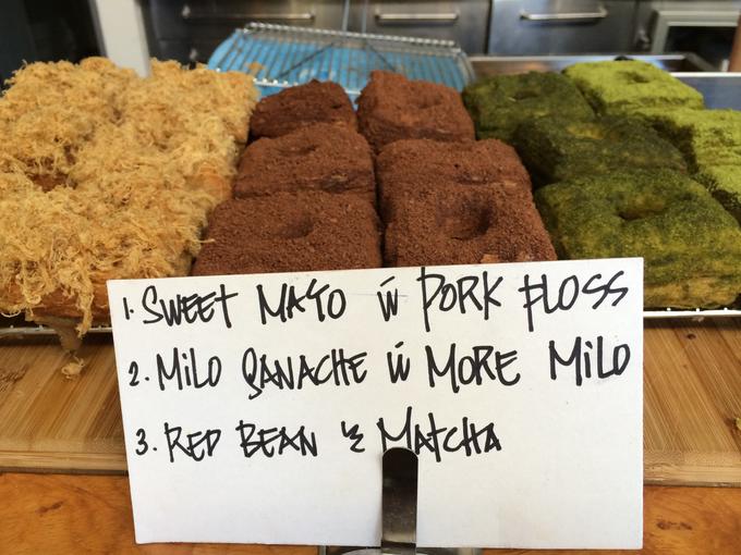 At popular Waterloo eatery Devon On Danks, they have given the cronut an Asian twist. Regular flavours include red bean and matcha and (the more unusual) sweet mayo with pork floss. For chocolate lovers there’s a ‘milo ganache with more milo’ cronut. The eatery makes very pretty doughnuts too – the ‘Dankin Doughnuts’ feature pale pink balls stuffed with vanilla cream and served with a pipette of raspberry sauce.