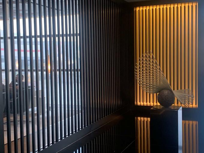 Modern lines and decorative sculpture welcome you to The Bridge Lounge