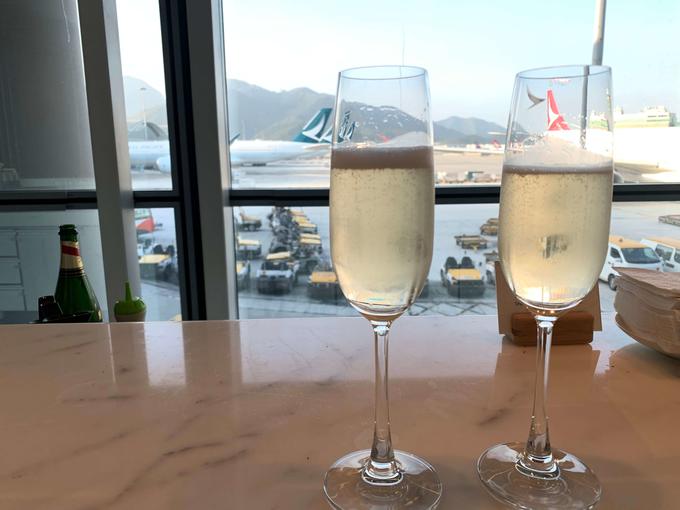 (Image: Phil Murray)There was also just enough time for a glass of Champagne from The Long Bar with a wonderful view of Cathay Pacific’s fleet, before our buzzers turned red.