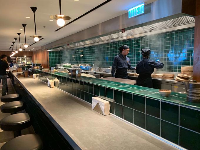 A very reasonable 15-minute wait time – there was actually zero wait time on our return leg– allowed us to explore both wings of this extensive lounge. We eventually opted for some delicious steamed dumplings from the Bakery, which it will come as no surprise also serves a wide selection of freshly baked bread and a plentiful buffet – think tapas, cheese board, salads, a fish platter, along with breakfast items early in the morning.