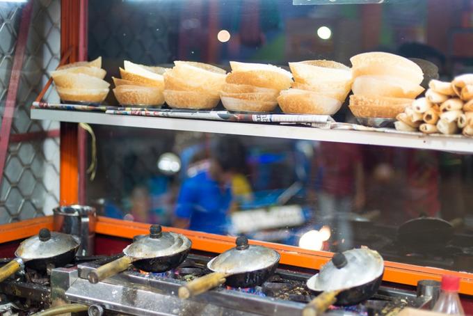 Breakfast is an important meal in Sri Lanka and hoppers (bowl-shaped pancakes) are the breakfast staple food. The batter is made the night before from fermented rice flour, coconut milk, coconut water and a little sugar. In the morning, the hoppers are cooked in a rounded pan shaped like a small wok (traditionally, hoppers were cooked over coconut-shell embers). Hoppers can be plain and eaten with spicy sambol or coconut relish, but the most popular version is topped with a fried egg. Not to be confused with string hoppers (Idiyappam), a sort of pancakes made from noodles steamed and pressed in a round shape.
