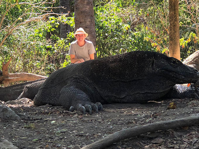 Soon it was time to discover what we’d come here for – the feared Komodo dragon. The heaviest lizards on Earth can only be found in Komodo National Park, and they will eat almost anything – including water buffalo, and even fellow Komodo dragons! We’d been warned not to underestimate their speed either; they can run at 12 miles per hour. With these alarming facts fresh in our minds, we jumped in a speedboat once more to Rinca Island, one of the best places to spot the dragons in their natural environment. We’d barely stepped off the boat before we saw one – a small dragon making its way towards us. “Don’t be fooled by their size; the small ones are often the most deadly.” I turned around to find another, much larger dragon, staring me down. It is hard not to be wowed by these magnificent beasts; they are so much bigger in real life than I’d anticipated, tails whipping behind them and tongues darting in and out. Some were lazing in the sun, others were hunting out food – one was staring down a deer, about to strike. The deer must have sensed danger, as it quickly scarpered, racing through the undergrowth out of sight. The dragon stayed exactly where it was – lying in wait for its next potential prey. All too soon, our time with these unique creatures was up and it was back to the boat.