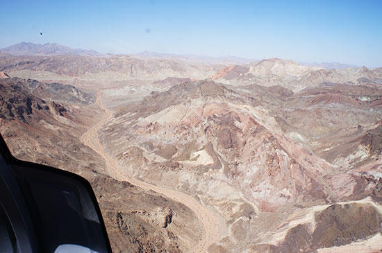 After flying out of the Canyon we then proceeded to glide over the Bowl of Fire, a dazzling collection of multi-coloured sandstone formations featuring white, pink and orange tones. We passed Lake Mead again and Robert pointed out wild donkeys by the water below, telling us he’d seen all sorts of animals in these parts, from wild horses to bald eagles and even a mountain lion.