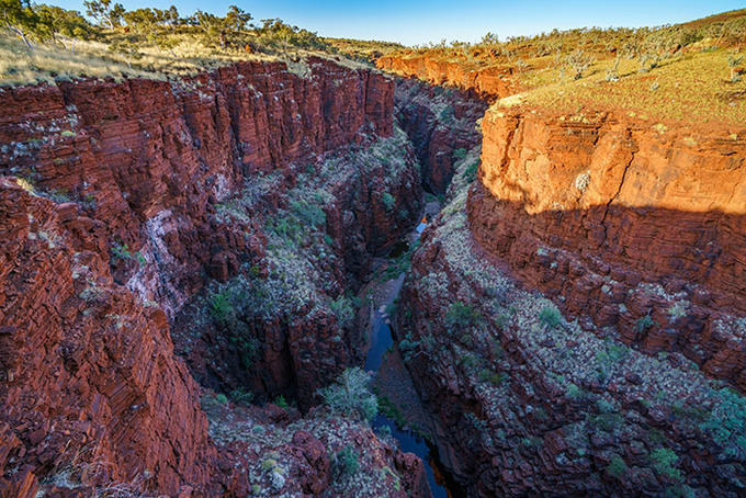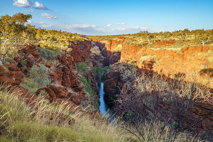 Karijini National Park is one of Australia’s best kept secrets, a raw, isolated and untouched world of red rocks, spectacular gorges and natural swimming pools. Found in the heart of the remote Pilbara region, Western Australia’s second largest national park encompasses thousands of square miles of mountains and landscapes. This is a semi-arid desert, but both travellers and wildlife find respite from the harsh climate in the rivers and watering holes, and Karijini is fast earning itself a well-deserved reputation as a haven for animals and an adventure playground for people.