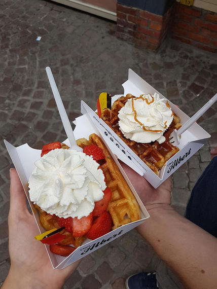 You can’t possibly go to Belgium and not try a waffle – or, in my case, three. Yup. Every day in Bruges I treated myself to a hunk of fried batter, topped with ice cream, cream and sauce. It’s likely to put you into a sugar coma, but no other waffle you’ve ever had will come even remotely close to how delightful they are here. We tried a few places, but agreed that Oyya was our favourite.