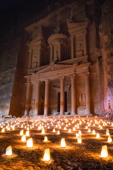 Undoubtably the most iconic spot in Jordan, if not the whole of the Middle East, the City of Petra is an absolute must see when visiting Jordan. Once the bustling capital of the industrious ‘Nabatean’ people, Petra is now an abandoned collection of breathtaking ruins carved into sandstone. The infamous Treasury (aka Al Khazneh), deserved of its World Wonder status, is impressive enough during the day, and it is absolutely breathtaking at night. When available ‘Petra by Night’ kicks off at 20:30. The walk from the entrance gate is a solid 4km, but it is a highlight in itself. The entire walkway is lit by candles, which guiding you through canyons, until you reach the starlit Petra Treasury.