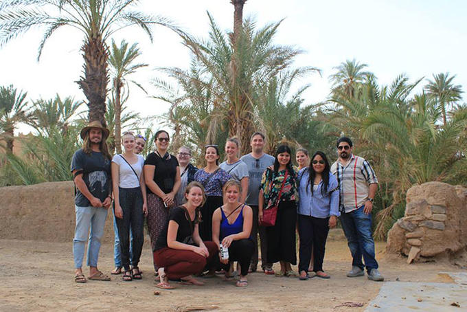 Starting out in the bustling city of Marrakech, I spent an afternoon discovering the hidden beauty of the Jardin Majorelle and getting lost in the maze of back streets within the city walls, before meeting the group that evening. The next day we travelled up and over the mighty Atlas Mountains – where our guide Abdul told us he is from – along the highest pass, to emerge the other side and spend the night in the village of Nkob. Not only did our hotel boast amazing sunrise views from the terrace, but the pool provided a welcome cool dip. In fact, the standard of accommodation throughout the trip impressed me, with traditional and quirky places at every stop. Here we got to see a simpler, quieter side of Morocco as we were shown around the village ‘gardens’ (like allotments but with palm trees) and taken to a local house for mint tea and bread.