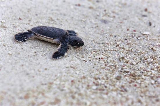 The Turtle Islands are uninhabited islands dedicated to rescuing endangered turtles and protecting their eggs and hatchlings. Both the Green Turtle and the Hawksbill Turtle return to Turtle Island, where they were also born, to lay between 80 and 180 eggs. It is instinct that draws the female turtles back to their birthplace to lay their own eggs, presumably because she believes it is a safe place to lay. Unfortunately, this instinct has made turtles vulnerable to poachers who collect the eggs and sell them as a delicacy. Turtle eggs are also in danger of natural predators such as lizards and birds. It is estimated that just one in every 1,000 eggs will make it to become an adult turtle, so protecting these precious eggs is vital.