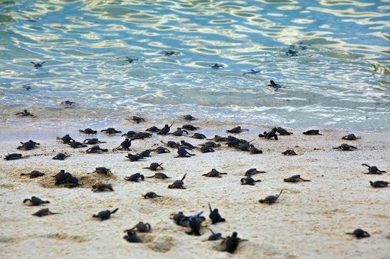 They are then released in the biggest group possible to give the turtles the greatest chance of survival. If they are released individually then it is likely they will be eaten in minutes but when they are released in a group at least a few of them will make it to safety.