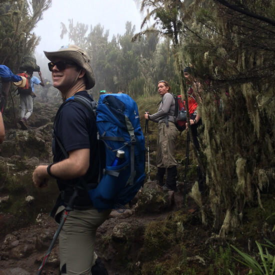 Along with 17 other Flight Centre colleagues, I was taking on the Machame route – one of the most popular climbs due to the scenery, but more physically tough than some other paths. As we arrived at Machame Gate, it began to rain and my heart sank. I hurriedly pulled on my waterproof trousers and rain jacket, and filed into line as we began our trek through the rainforest, passing a sign wishing us luck. The drizzle soon eased as we trekked past monkeys and lush greenery during the six-hour hike to Machame Camp, which we reached at dusk. Dinner on the mountain is unlike anything I have experienced before. We were served cucumber soup, a huge plate of spaghetti Bolognese and endless bread and butter. Cleaning my teeth by my tent afterwards, I looked up and audibly gasped. I have never seen a sky like it; a tapestry of stars stretched overhead and even the Milky Way was visible. I had to force myself to tear my eyes away and get to bed.