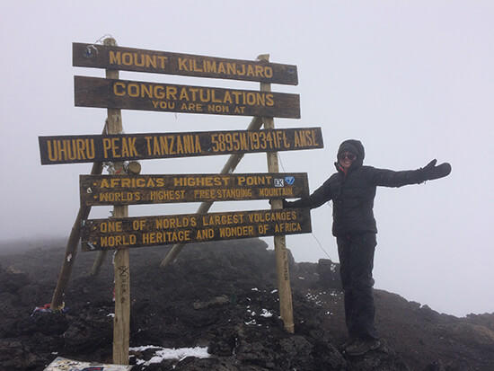 The final climb felt never-ending. I was stopping every few paces to catch my breath, and the summit seemed to be getting further away. When the sign finally came into view at 10am, I hugged the team and slumped onto a rock. I felt emotional, relieved and exhausted. I was also desperate for my tent. It sounds silly, but I hadn’t even thought about the descent and several of us were now feeling the effects of altitude sickness. I have never been more grateful for my porter; he carried my bag and assisted me back down to Mweka Camp – a three-hour hike through a snow blizzard.